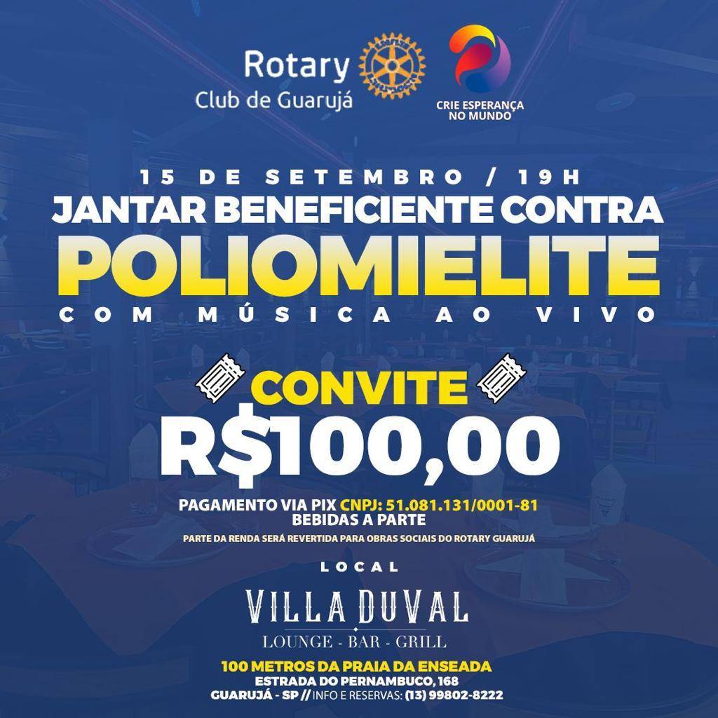 Jantar beneficente contra a Poliomielite, todo o valor arrecadado será destinado para a END PÓLIO NOW.